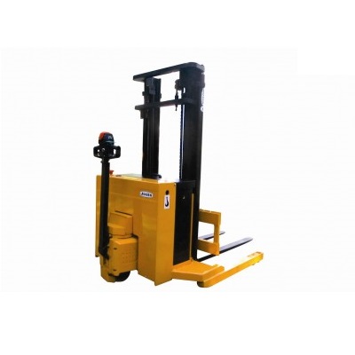 The Jost’s Electric Stacker- Walkie, type EJB has been designed for the flexible handling of special pallets and loads. Jost’s pedestrian straddle electric stackers are ideally suited for increased performance at high lift heights with high residual capacities as well as long usage times. The straddle pedestrian electric stacker through its widened straddle arms and forks can be lowered almost to the ground and be used to pick up unit load on closed pallets where the support straddle cannot be taken underneath the pallets.