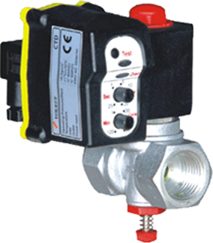 The Trident Drain Valve Series CTD is controlled by a timer. The valve and timer